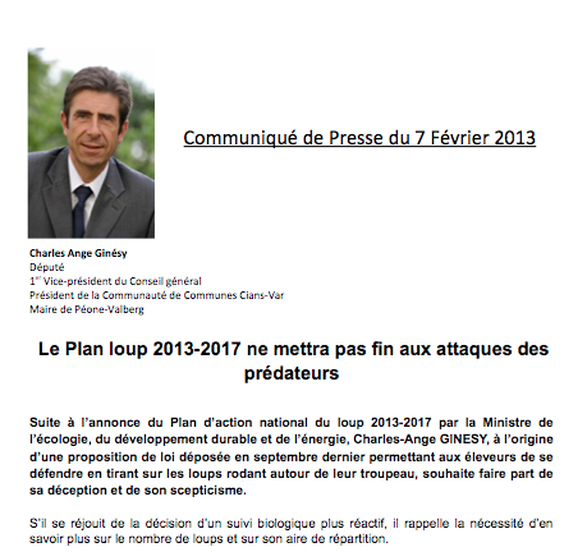 Charles-Ange Ginésy réagit face à la prolifération du loup !