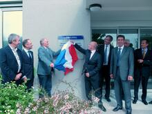 26/09/2013Eric Ciotti, Président du Conseil Général des Alpes-Maritimes, a dévoilé la plaque inaugurale de la nouvelle Direction générale adjointe en charge du développement des solidarités humaines, au Conseil Général, aux côtés notamment des vice-présidents Charles-Ange Ginésy et Auguste Verola, et du directeur général des services Franck Robine. M. Ciotti a à cette occasion remercié le personnel ayant participé à cette réforme et rappelé l'engagement de la collectivité dans les politiques sociales. |